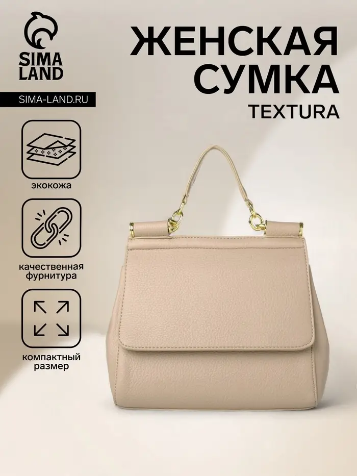 Сумка женская мессенджер TEXTURA на клапане, 17×10×18 см, бежевая