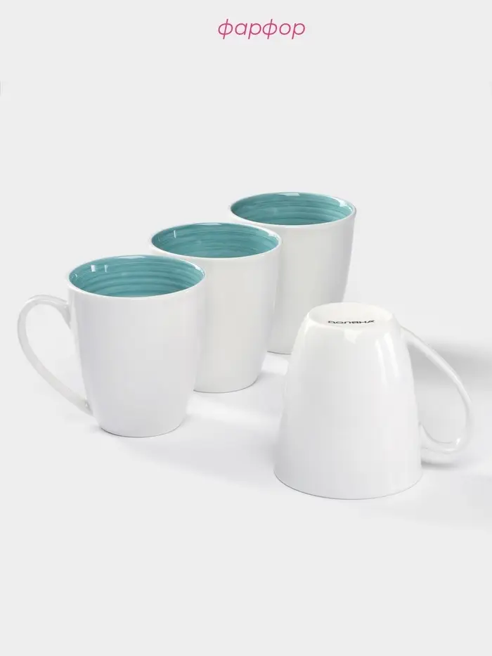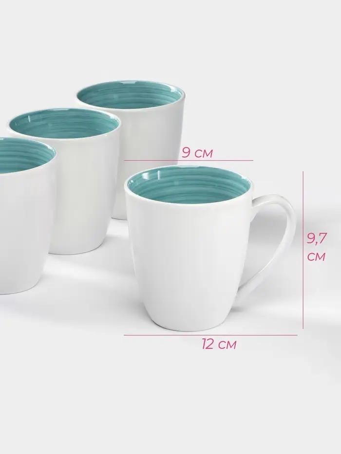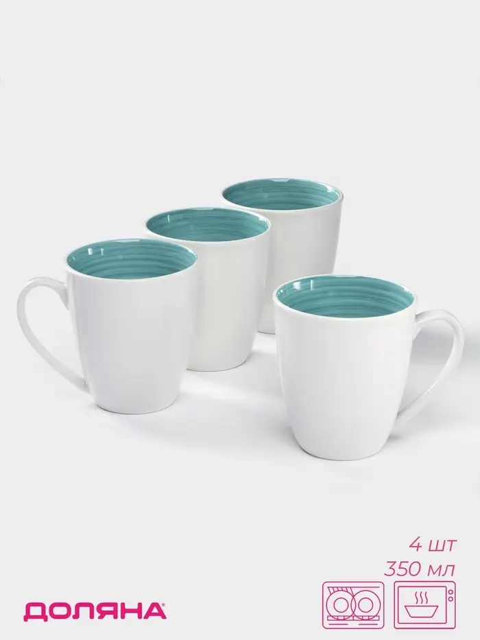 Кружки Доляна «Палитра», 350 мл, 4 шт., фарфор, белые, бирюзовые
