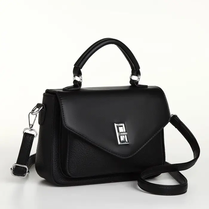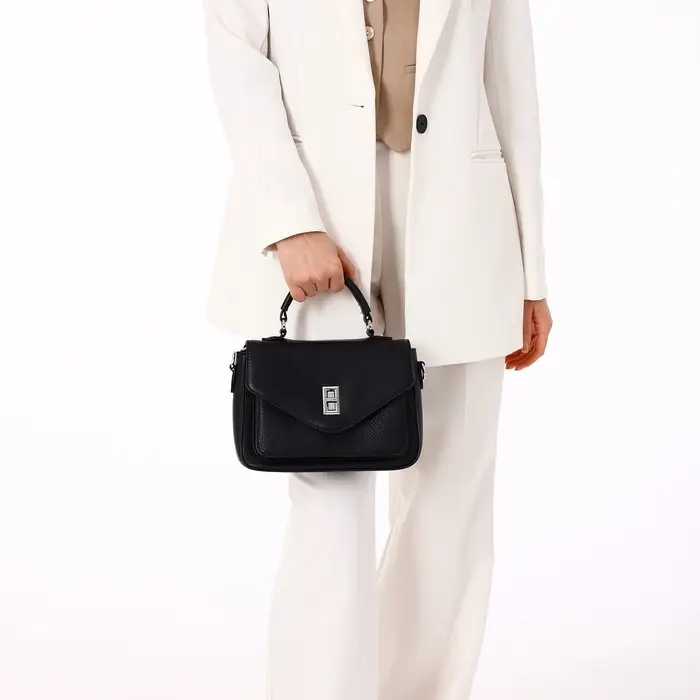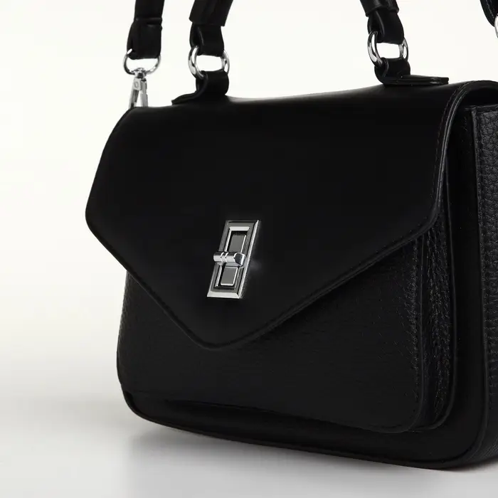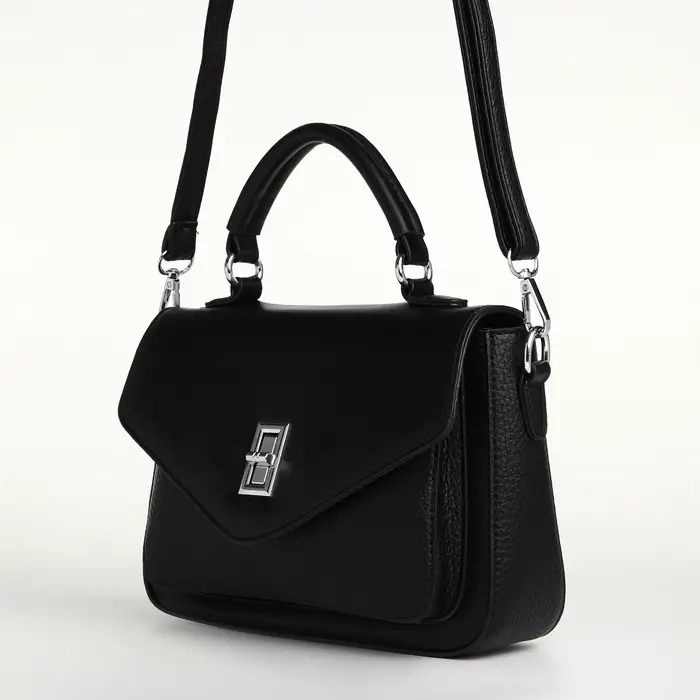 Сумка женская мессенджер TEXTURA на клапане, 24×7×16 см, чёрная