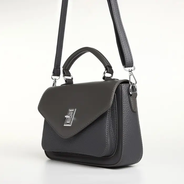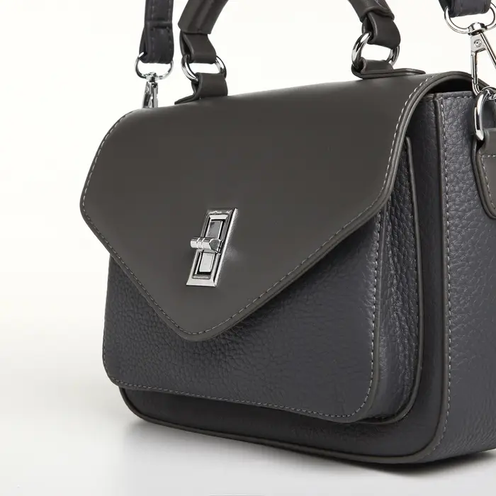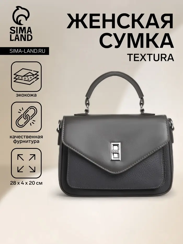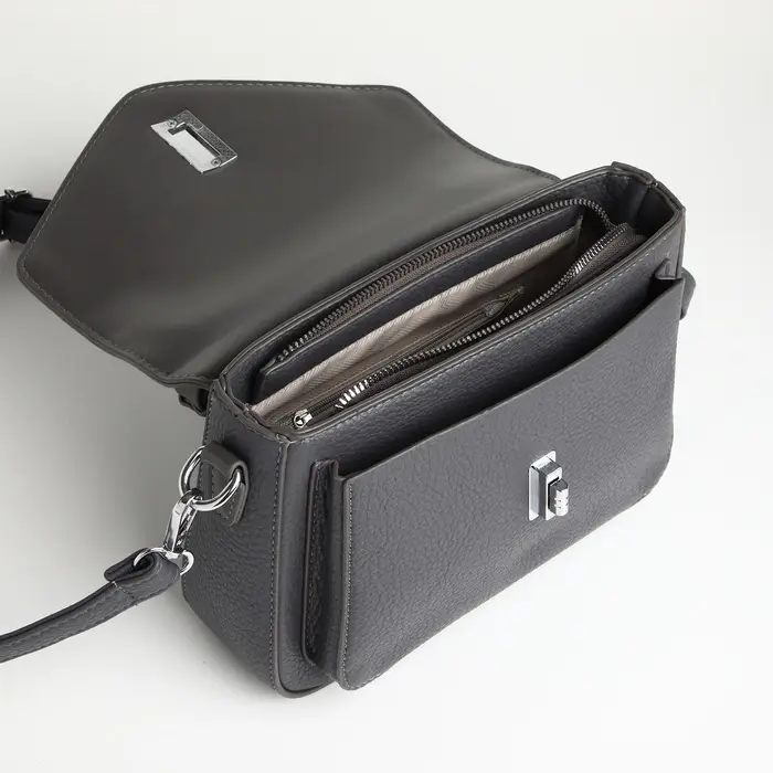 Сумка женская мессенджер TEXTURA на клапане, 24×7×16 см, тёмно-серая