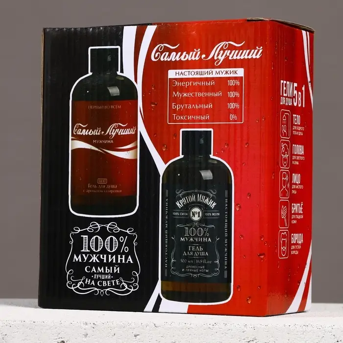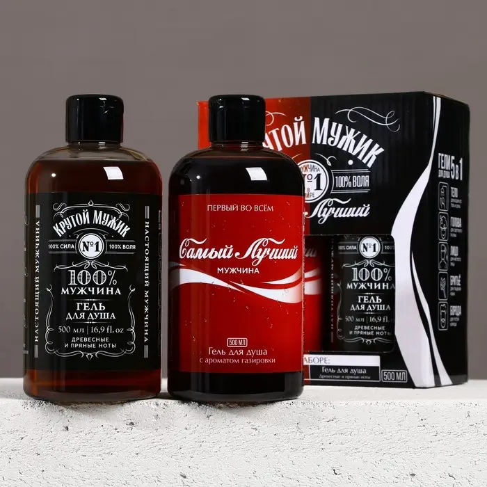 Подарочный набор «Крутой мужик»: гель для душа виски и кола, 2×500 мл, Чистое счастье