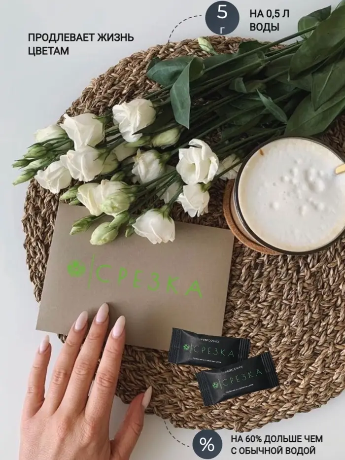 Удобрение для срезанных цветов "Срезка" - это специализированный продукт, предназначенный для продления жизни срезанных цветов и поддержания их свежести.