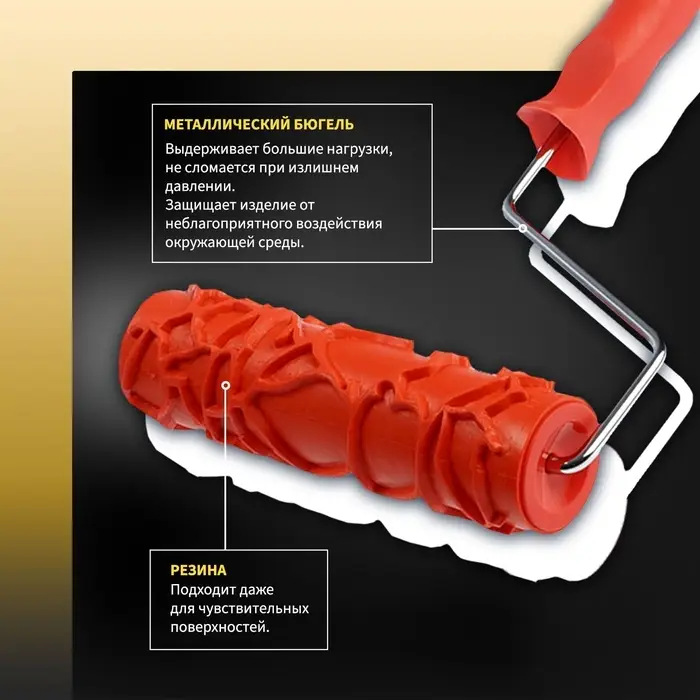 - Износостойкая конструкция: Плотная резина сохраняет рельеф при длительном использовании. Эргономичная пластиковая ручка с креплением 6 мм.