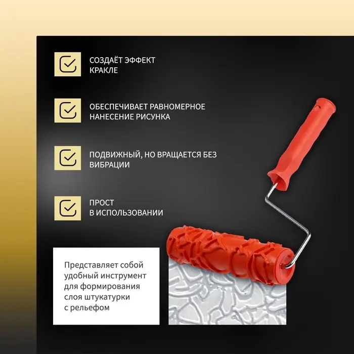 Эффект антикварного покрытия за минуты! Резиновый валик «Кракле» 180 мм — профессиональный инструмент для создания эффекта искусственного состаривания. Формирует декоративные трещины на различных поверхностях.