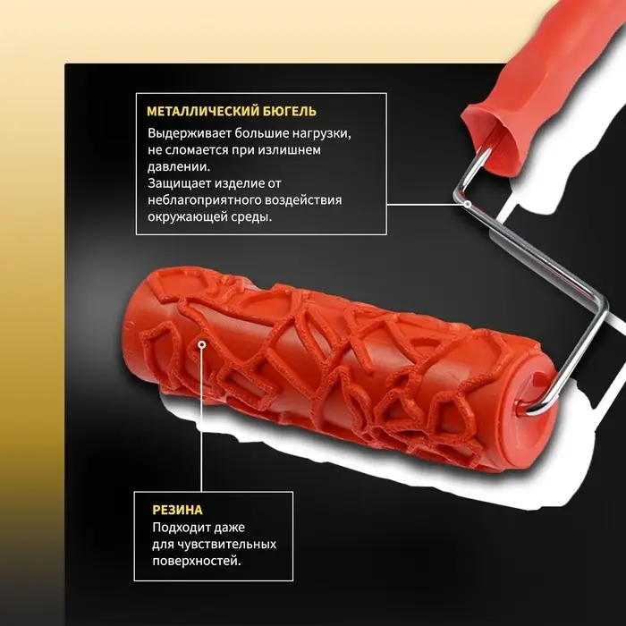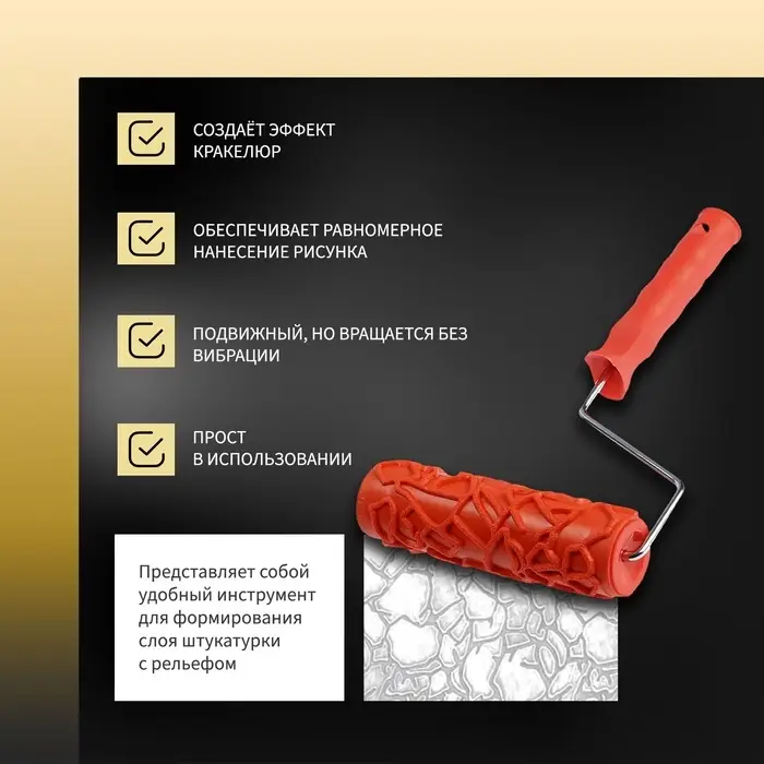 Эффект старины за несколько движений! Резиновый валик «Кракелюр» 180 мм — специальный инструмент для создания эффекта потрескавшейся поверхности. Формирует декоративные трещины на штукатурках и структурных красках.