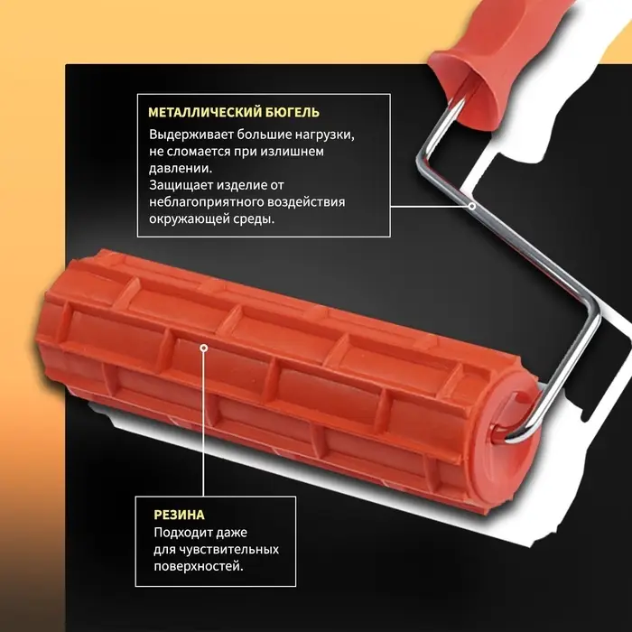 Как использовать: Нанесите декоративную штукатурку или структурную краску, затем прокатайте поверхность валиком. Для лучшего эффекта работайте по свежему материалу равномерными движениями. После работы сразу очистите резиновую поверхность.