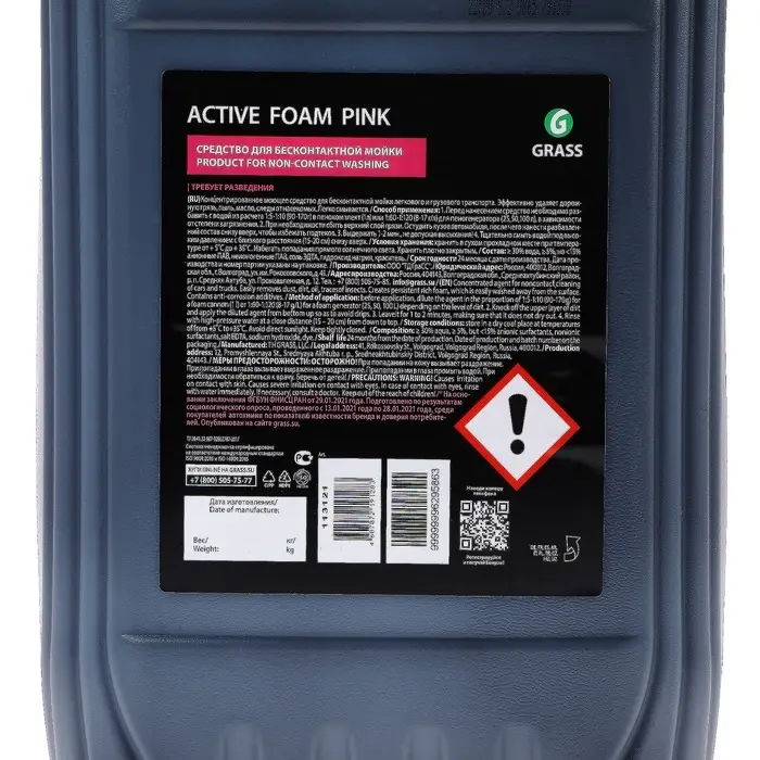 Назначение: Высокопенное концентрированное слабо-щелочное средство для бесконтактной мойки любого автотранспорта. Легко удаляет дорожную грязь, пыль, масло, следы от насекомых. Создает стойкую обильную пену, которая легко смывается с поверхности. Наносится с помощью пенораспылителя, придает блеск, не причиняет вреда лакокрасочным поверхностям. Обладает эффектом снежных хлопьев, пена окрашена в розовый цвет.