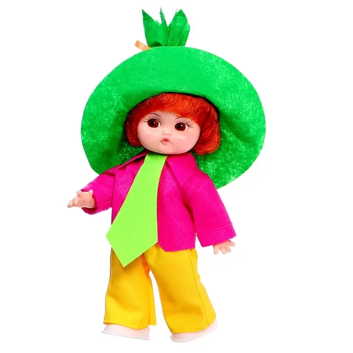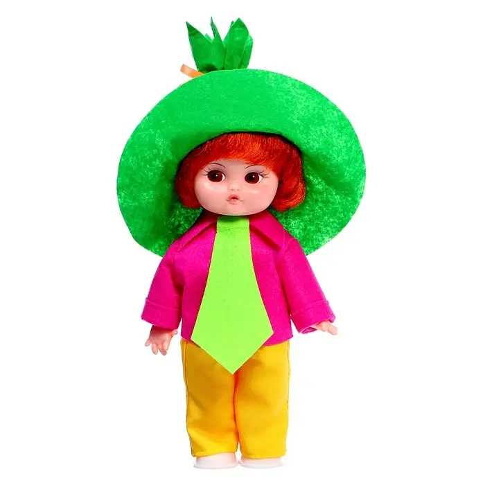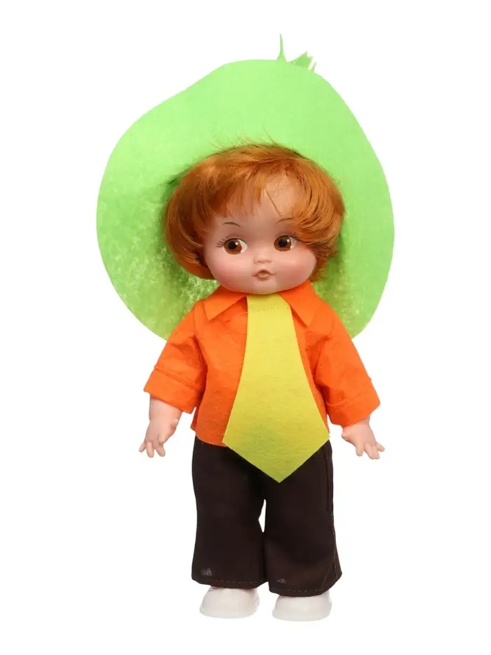 Кукла «Незнайка» — классическая кукла в ярком сказочном образе, вдохновлённом известным персонажем. Большая шляпа, контрастный костюм и выразительные цвета создают живой и легко узнаваемый облик, который сразу задаёт настроение игры.