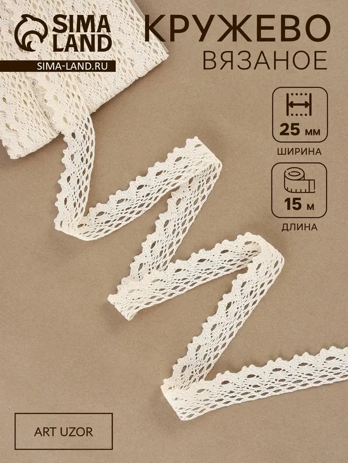 Кружево вязаное, 25 мм, 15±1 м, бежевое
