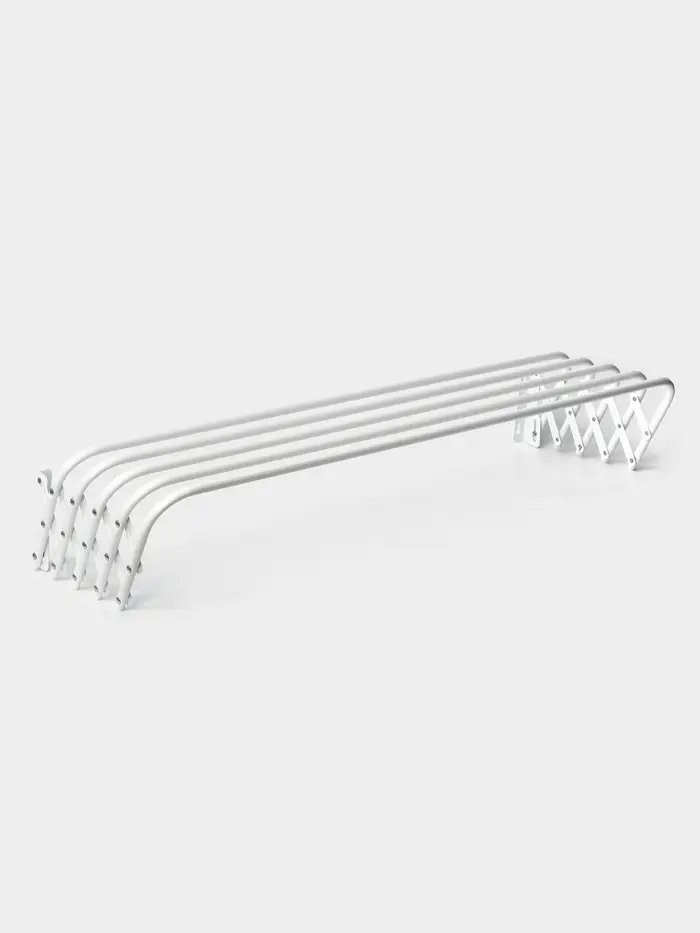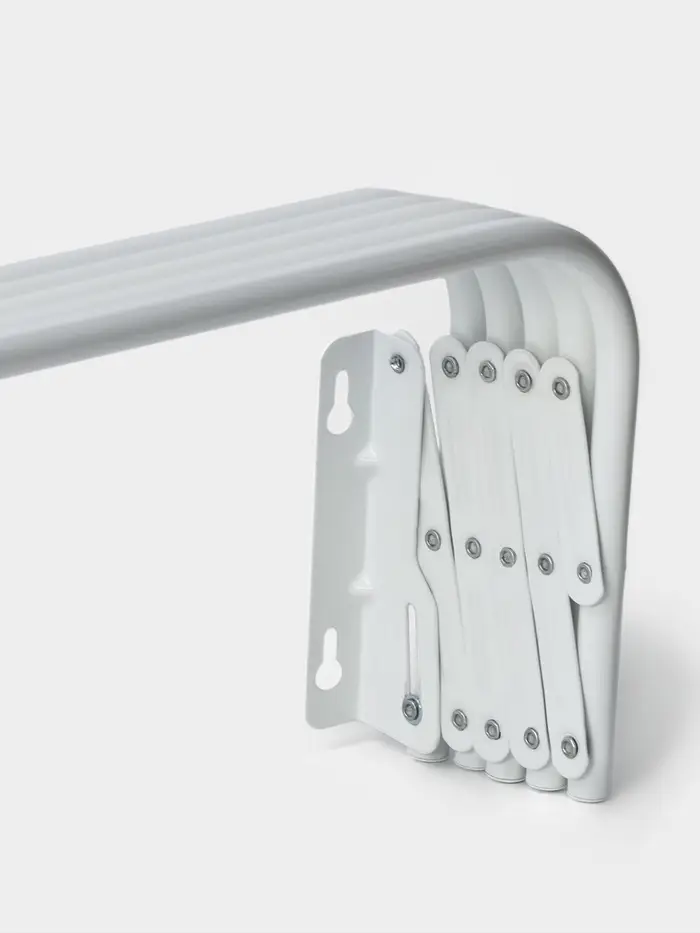 Дома мало места для сушки белья? Перед вами хорошая альтернатива верёвкам, прищепкам и громоздким конструкциям! Настенная сушилка имеет металлический каркас и пластиковые наконечники. Материалы не впитывают влагу и запахи. Вам всего лишь нужно установить изделие и развесить бельё. По окончании использования просто снимите вещи, а приспособление сложите.