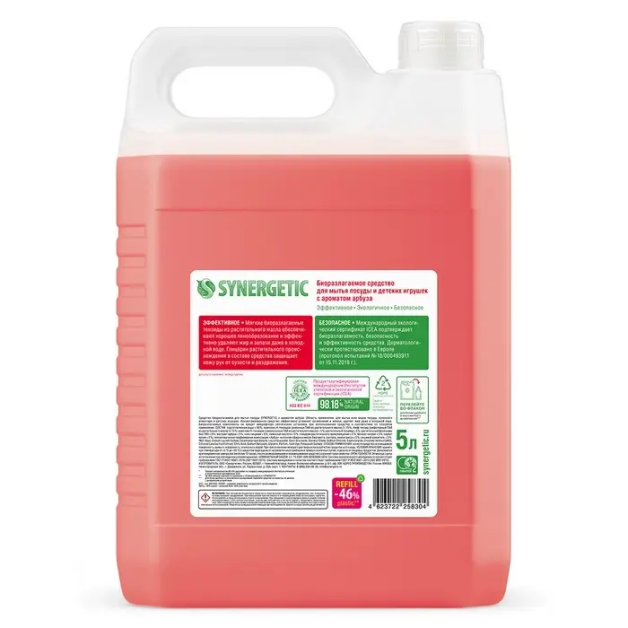 Биоразлагаемый концентрированный гель для посуды с антибактериальным эффектом SYNERGETIC - это экологичное, безопасное и эффективное средство для мытья всех видов посуды, в том числе детской, кухонного инвентаря и детских игрушек от любых видов загрязнений.