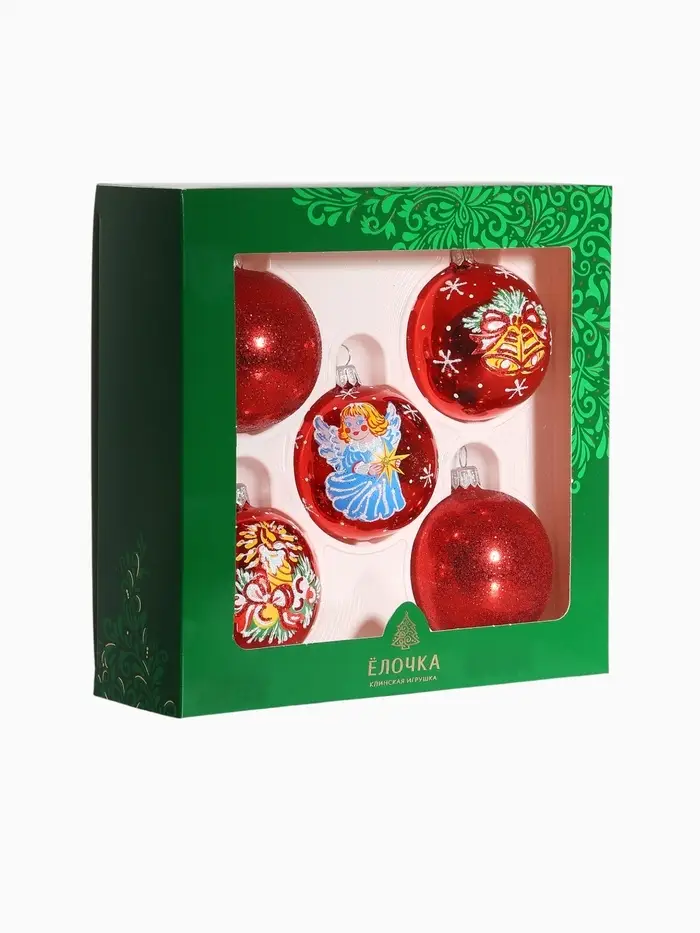 Ёлочные шары «Рождественские», d=6 см, набор 5 шт., МИКС