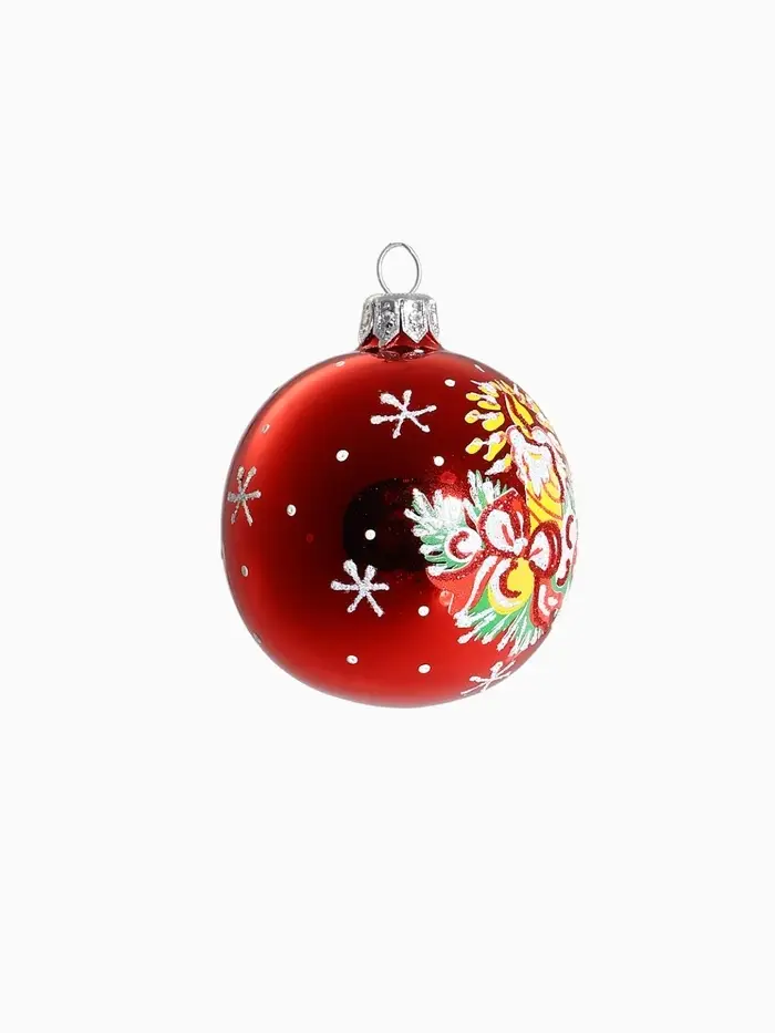 - Форма — шар, универсальный элемент любого новогоднего убранства.