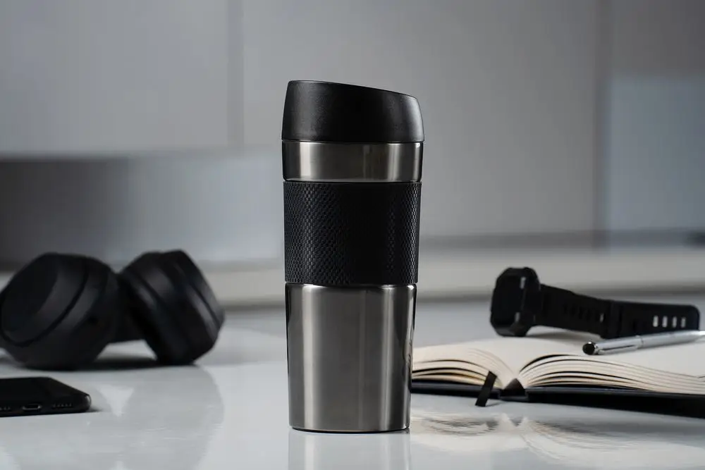 Удобная крышка с кнопкой-закрывашкой и силиконовая манжета на корпусе — все, что нужно, чтобы максимально комфортно пить чай или кофе в дороге.