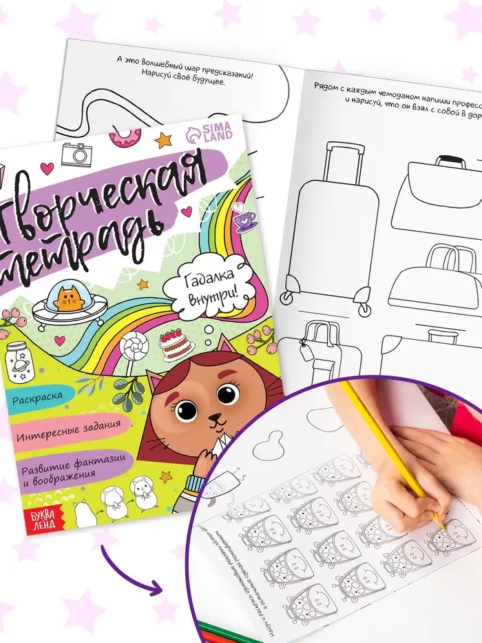 Он совмещает творчество и досуг. Мягкий переплёт книг удобен для детских рук, а компактный формат позволяет брать материалы с собой. Каждая деталь набора продумана, чтобы сделать процесс творчества лёгким и увлекательным.