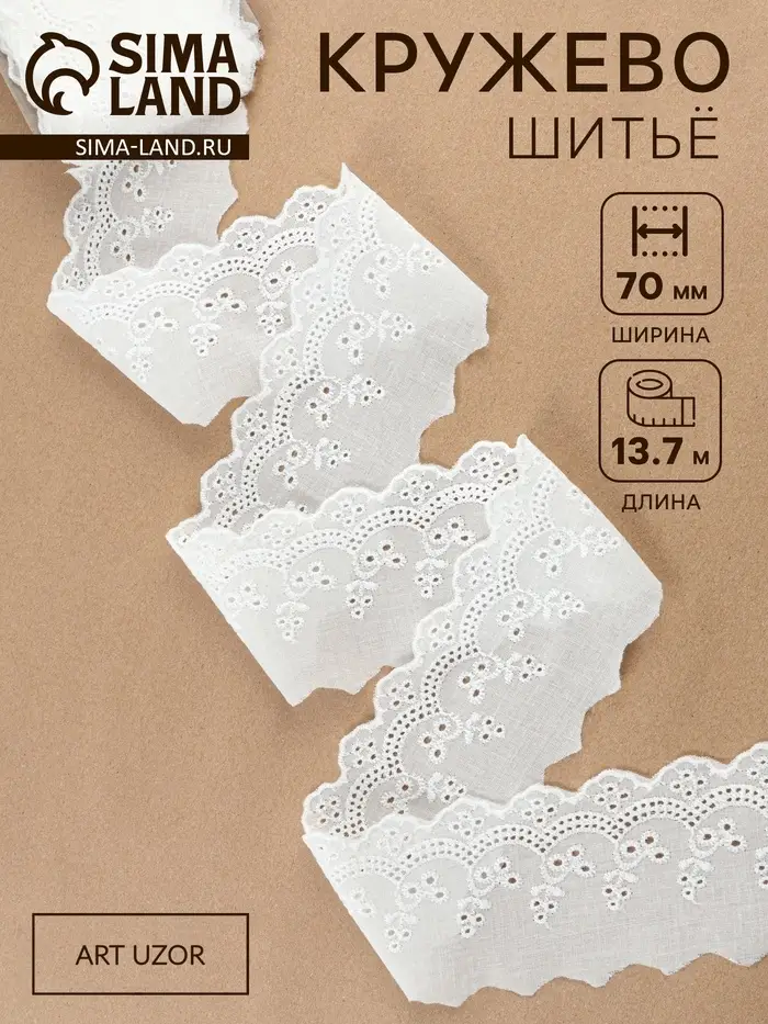 Кружево шитьё, 70 мм, 13.7±1 м, белое