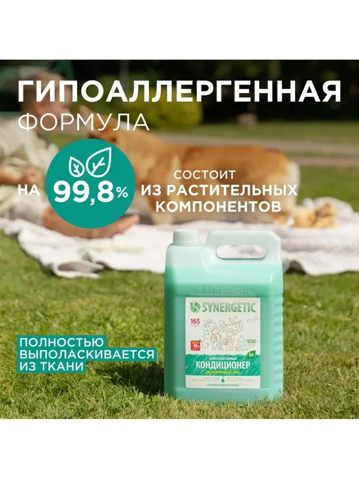 Кондиционер-ополаскиватель для белья Synergetic «Реликтовый лес», гипоаллергенный, 5 л