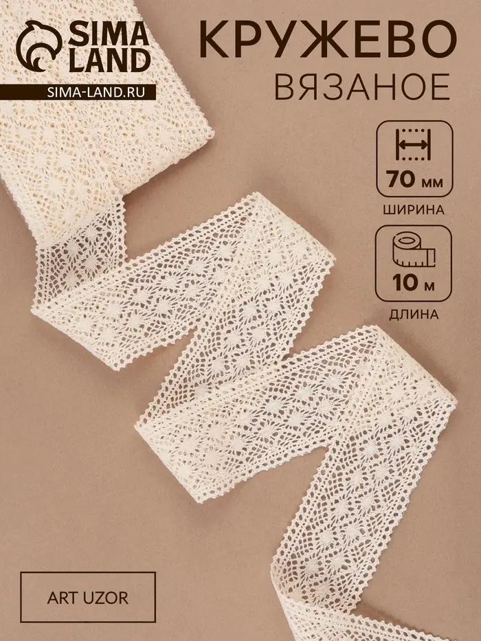 Кружево вязаное Арт Узор, 70 мм, 10±1 м, бежевое