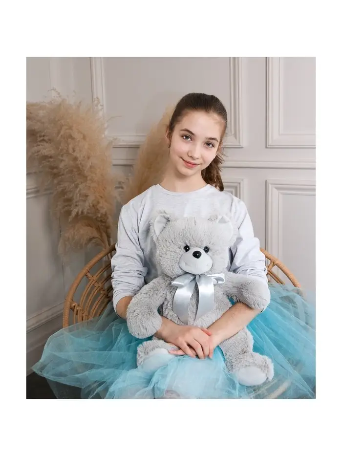 Мягкая игрушка «Медведь Саша» — элегантный плюшевый медвежонок в спокойном сером оттенке с аккуратным атласным бантом. Сдержанный дизайн и приятная фактура делают его универсальным подарком — тёплым, но без излишней «детскости».