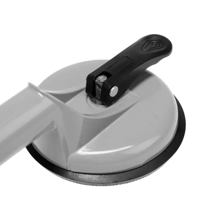 - Эргономичная рукоятка: Рычажный механизм создает вакуум в присосках одним движением. Фиксатор блокирует положение рукоятки во время переноски стекла.