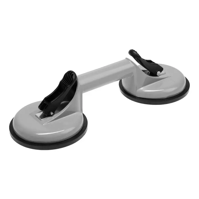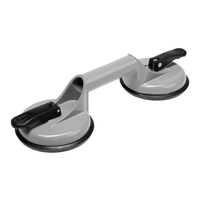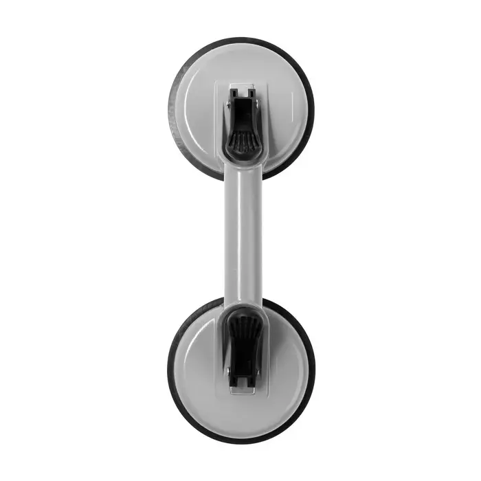 Безопасный монтаж стеклянных полотен. Двойной алюминиевый стеклодомкрат длиной 125 мм — это инструмент для подъема и фиксации стеклянных панелей при установке. Конструкция с двумя присосками распределяет нагрузку и предотвращает соскальзывание стекла.