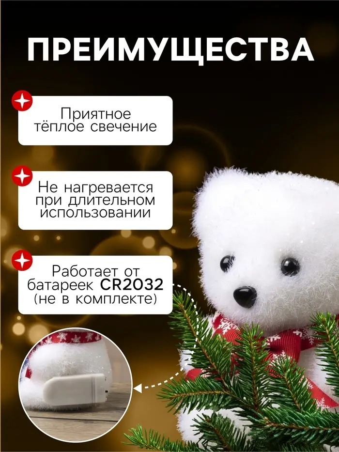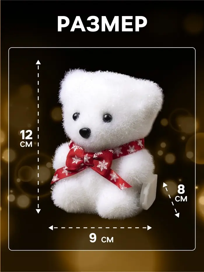 Светодиодная фигура «Мишка в шапке» 9×23×7 см, флок, от батареек CR2032×2, свечение тёплое белое