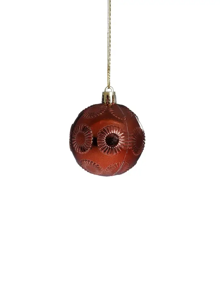 Ёлочные игрушки «Ажур», шары новогодние, d=7.5 см, набор 6 шт., красный/бежевый