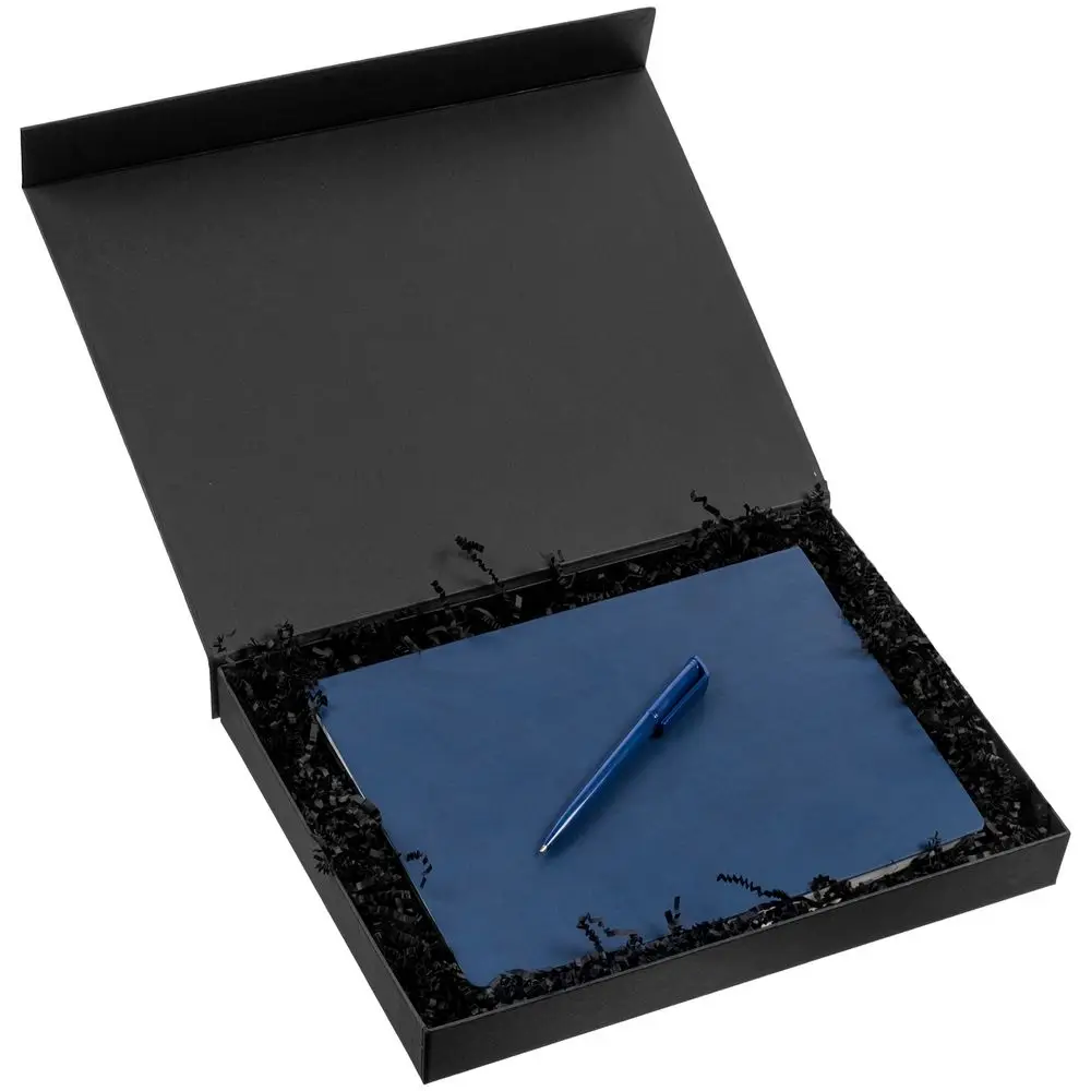 Коробка Silk с ложементом под ежедневник и ручку, ver. 2, синяя