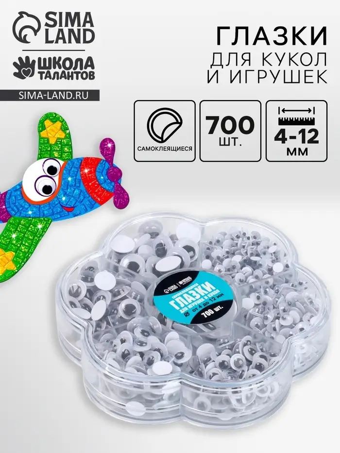 Набор самоклеящихся глазок для кукол и игрушек 4-12 мм, 700 шт.