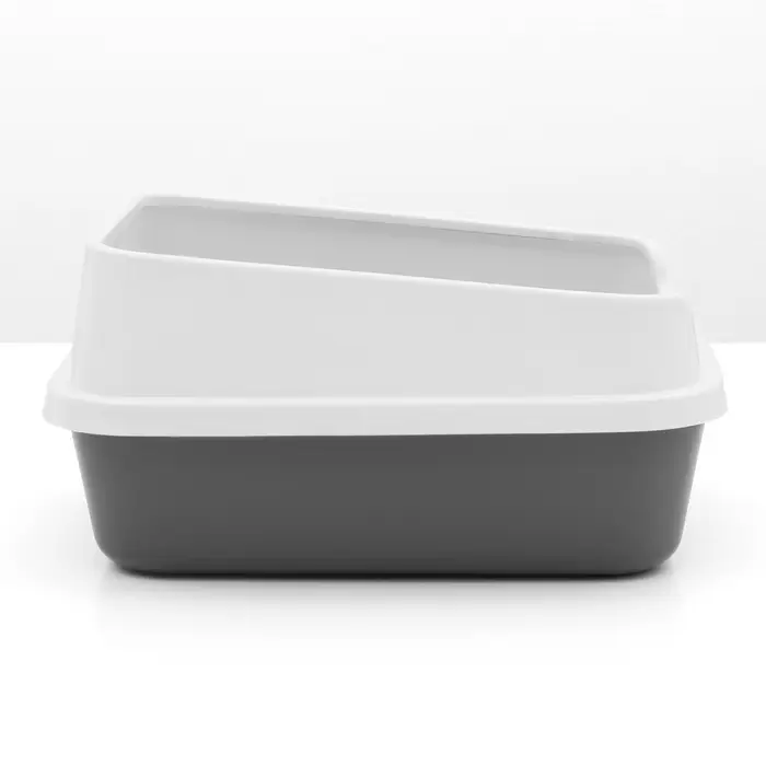 - Высокие бортики: предотвращают разбрызгивание наполнителя и поддерживают чистоту вокруг лотка.