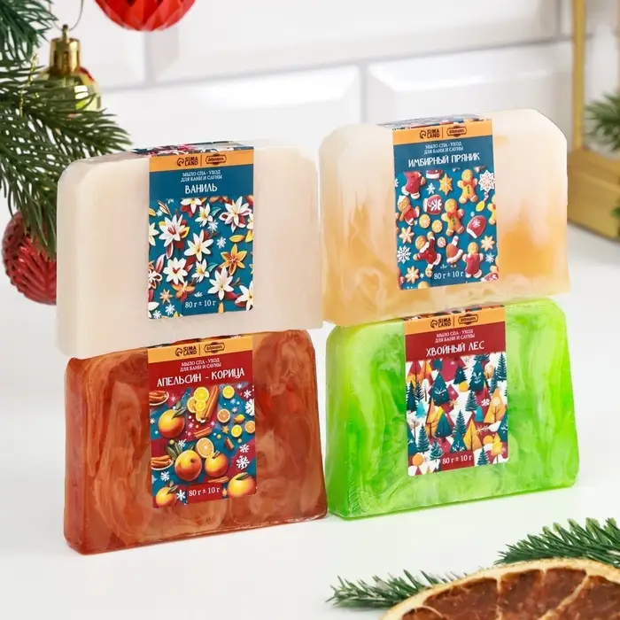 Подарите себе и своим близким радость нежного ухода с новогодним набором мыла ручной работы – сочетанием заботы, красоты и праздничного волшебства!