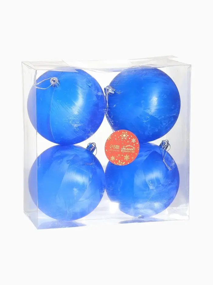 Ёлочные игрушки «Туман», шары новогодние, d=10 см, набор 4 шт., синий