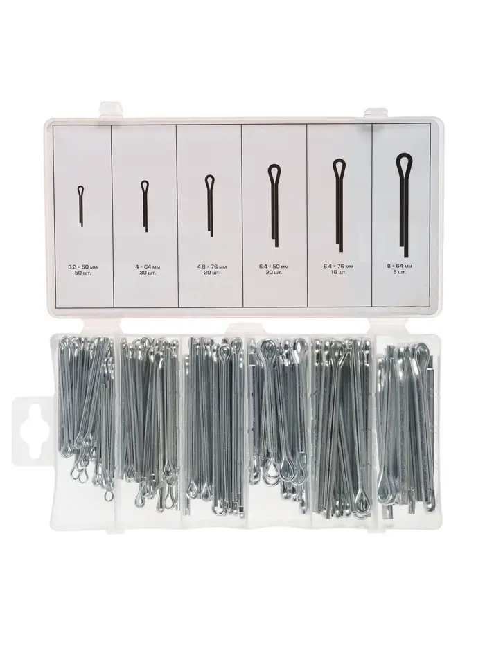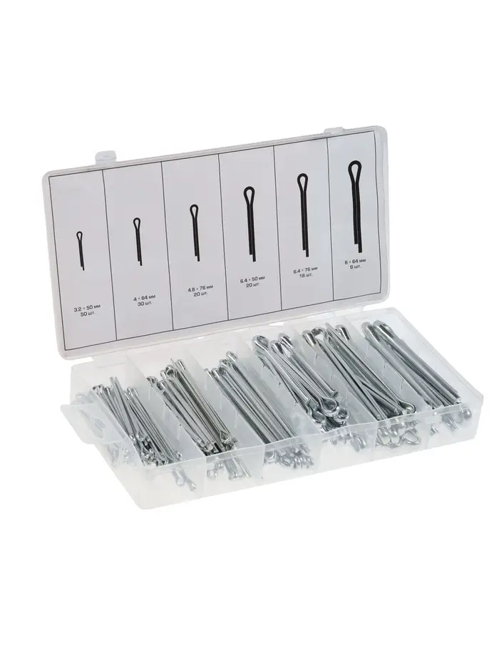 Преимущества набора: универсальный комплект шплинтов пригоден для ремонта и сборки механизмов, обеспечивает надежную фиксацию и подходит для профессионального и бытового использования.