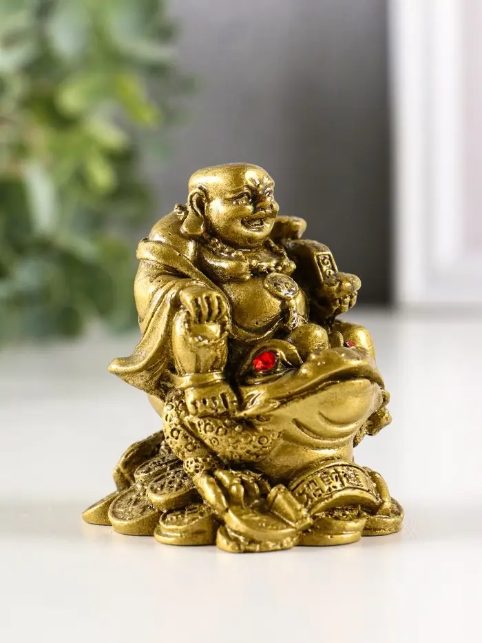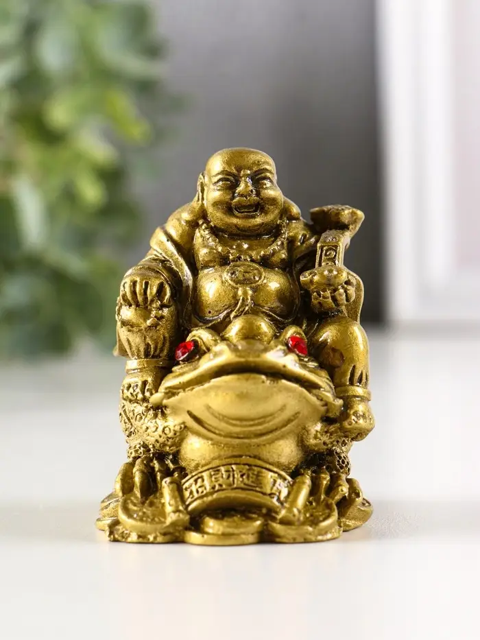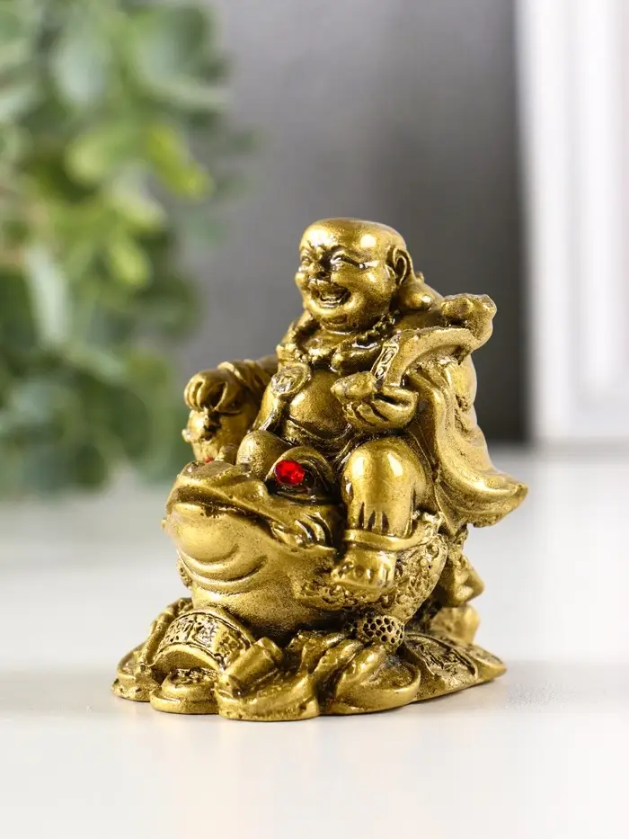 Нэцкэ фигурка «Хотей на жабе», под бронзу