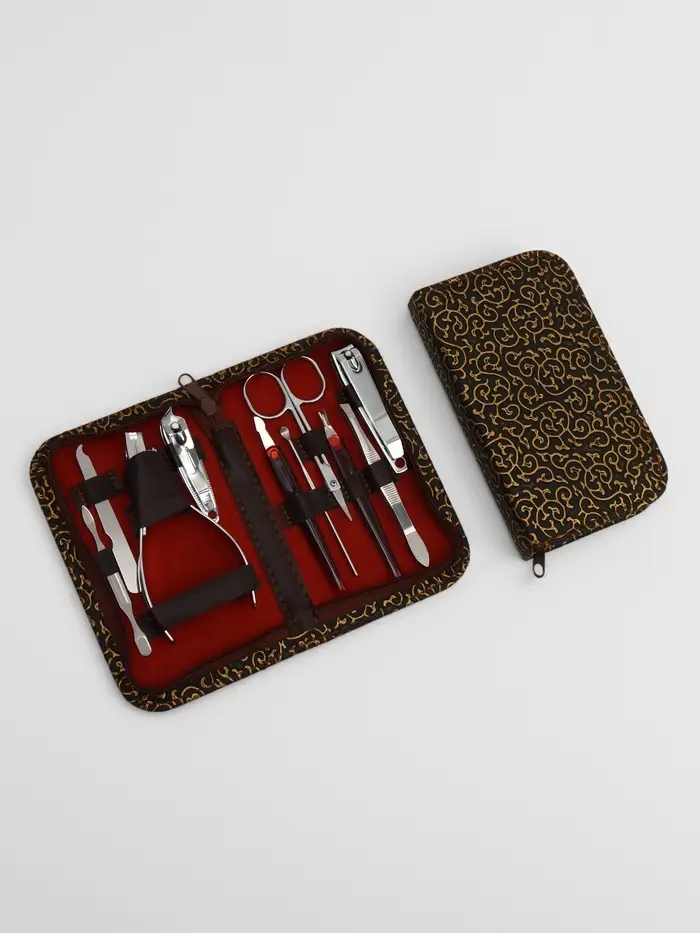 Набор маникюрный «Вензеля», 10 предметов, в футляре, коричневый