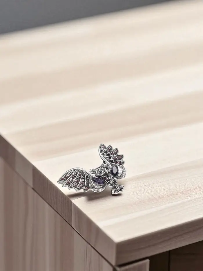 - Элегантный дизайн: уникальная форма совы и насыщенный фиолетовый цвет делают брошь стильным акцентом в вашем образе.