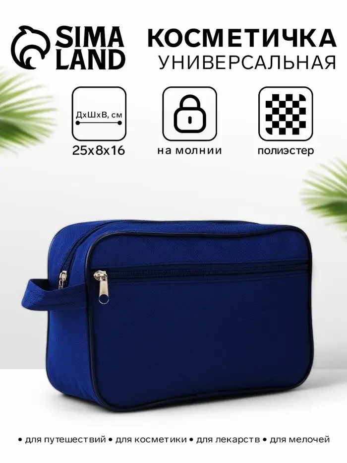 Косметичка дорожная на молнии «Бако текстиль», с ручкой, с карманом, синяя
