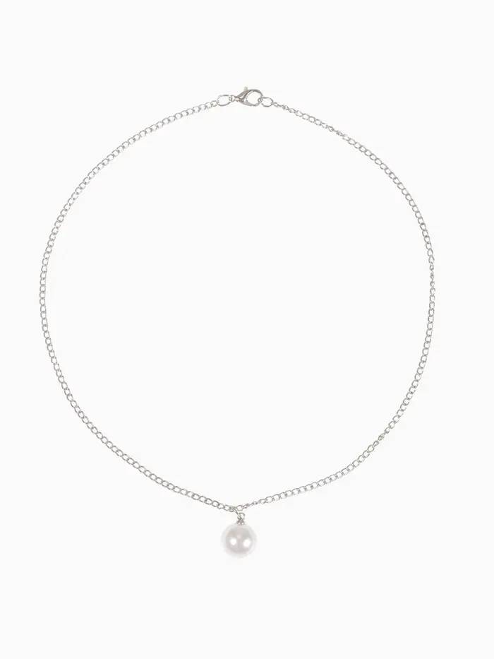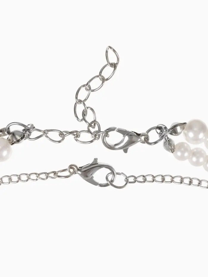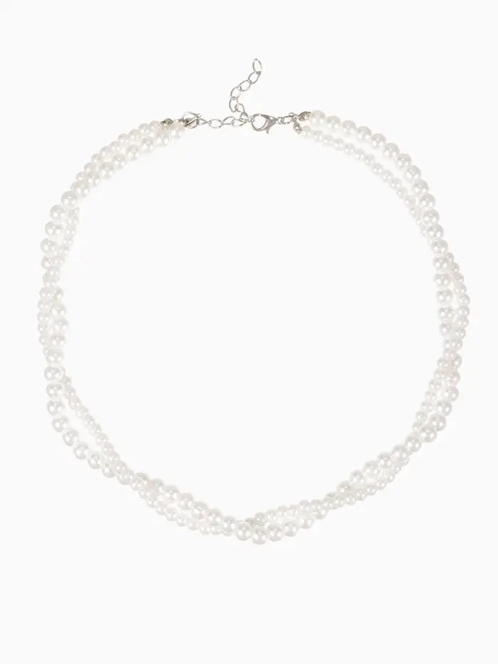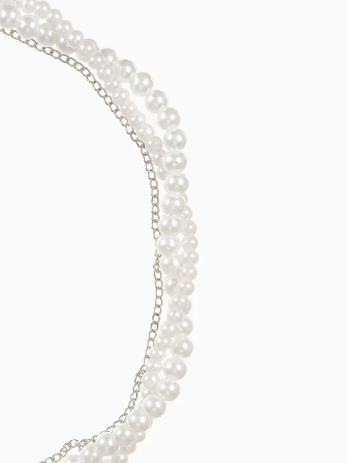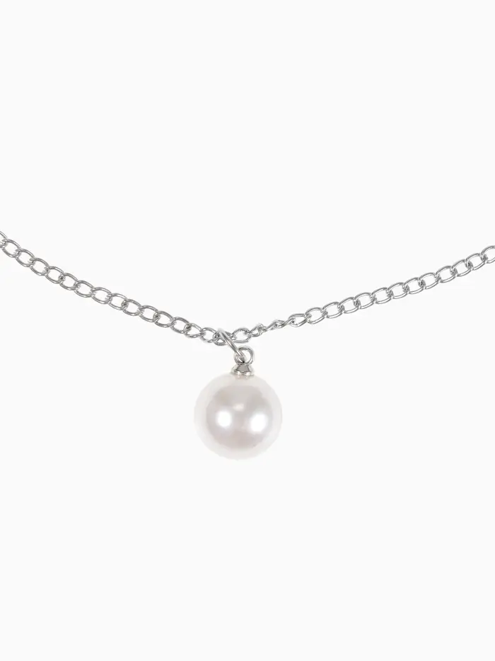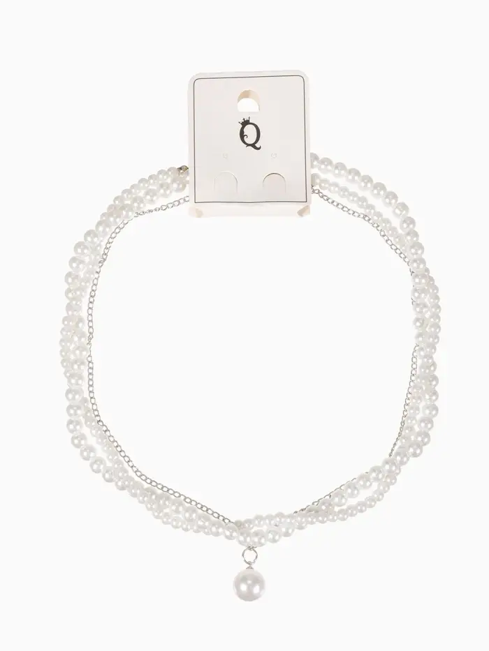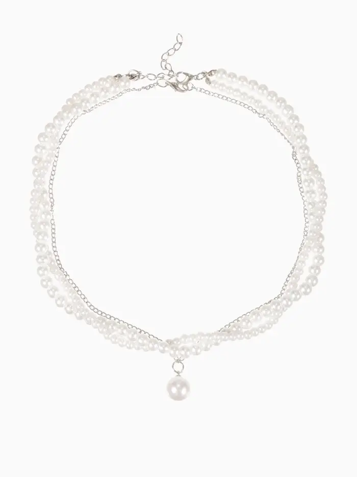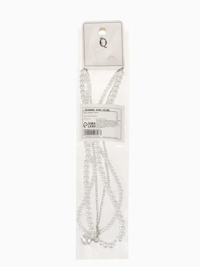 Бусы 2 яруса «Рошель», подвеска капля на цепочке, шар №12, L=42 см, белые в серебре