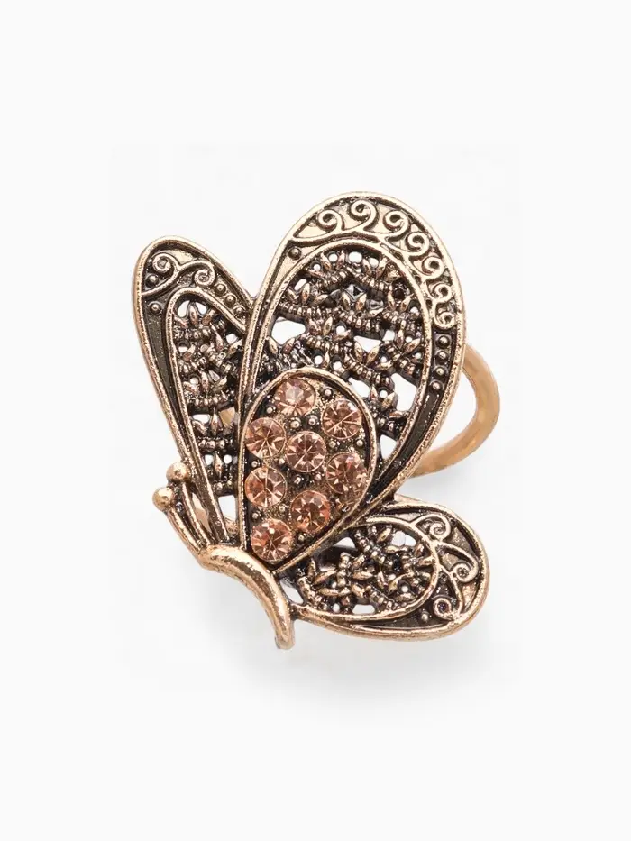 Кольцо для платка «Бабочка», цвет золото в черненом золоте
