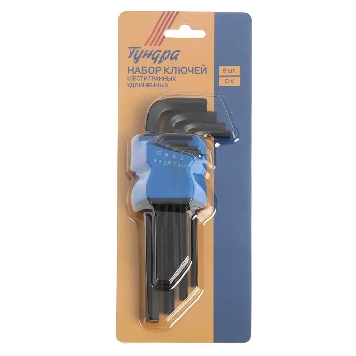 Набор ключей шестигранных ТУНДРА, удлиненных, CrV, 1.5 - 10 мм, 9 шт.