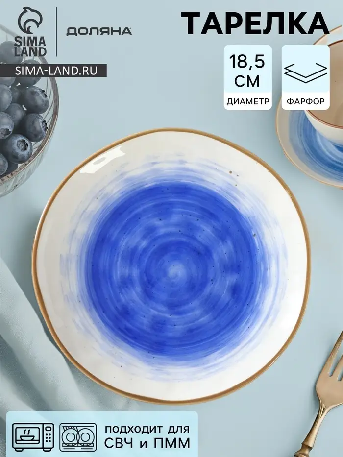 Тарелка Доляна «Космос», d=18.5 см, фарфор, белая, синяя