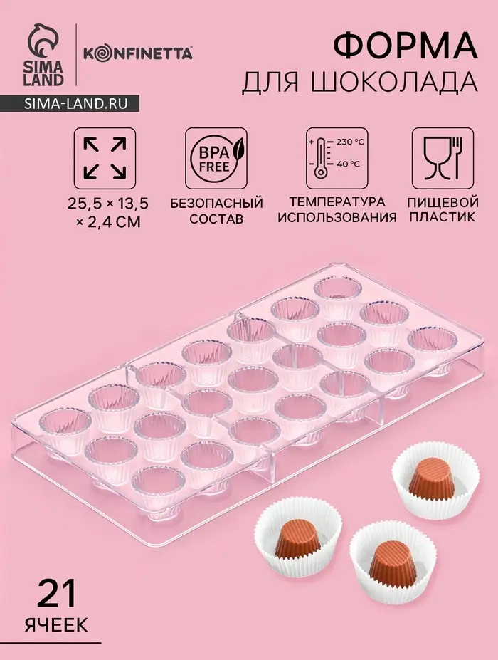 - Множество конфет за раз: 21 ячейка позволит вам быстро и эффективно приготовить большое количество маленьких конфет.