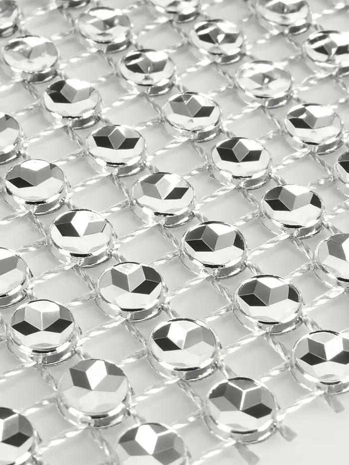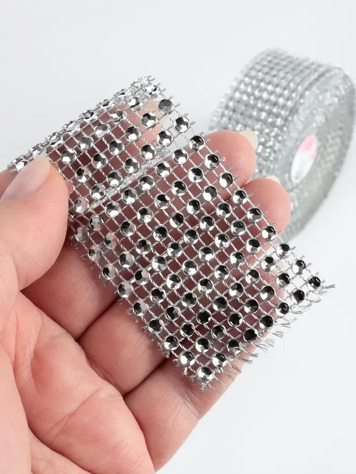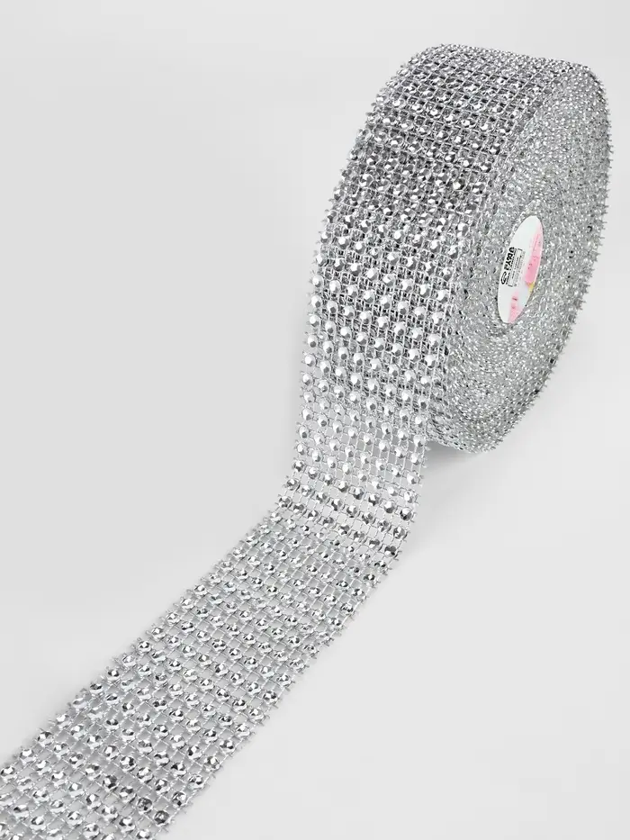 Серебристая лента с имитацией страз — это стильный и практичный элемент декора для творчества и оформления. Ширина 4 см создаёт яркий, но не громоздкий акцент, а холодное сияние приближено к внешнему виду драгоценных камней. Длина от 8 до 10 метров позволяет использовать ленту в разных проектах — от одежды до интерьерного дизайна.