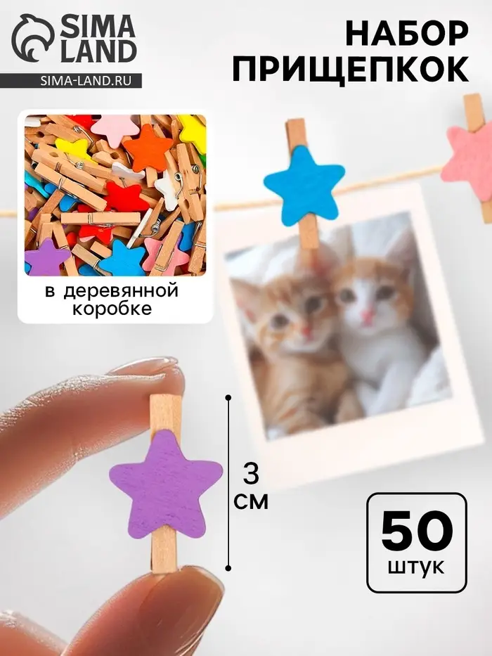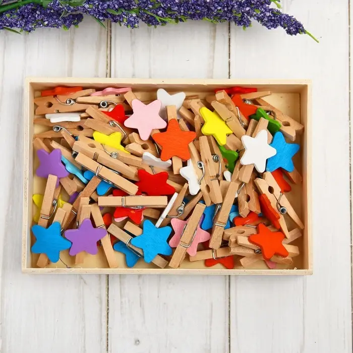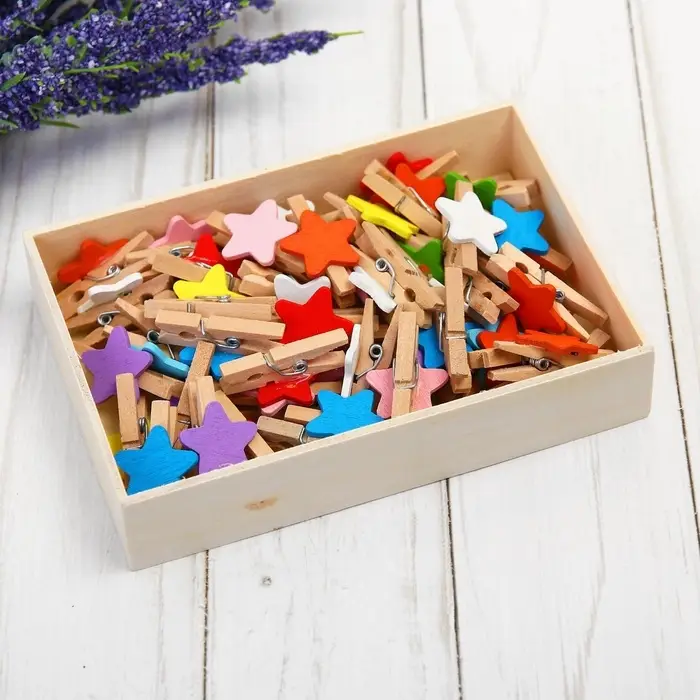 Набор прищепок в деревянной коробке «Звёздочки», набор 50 шт.