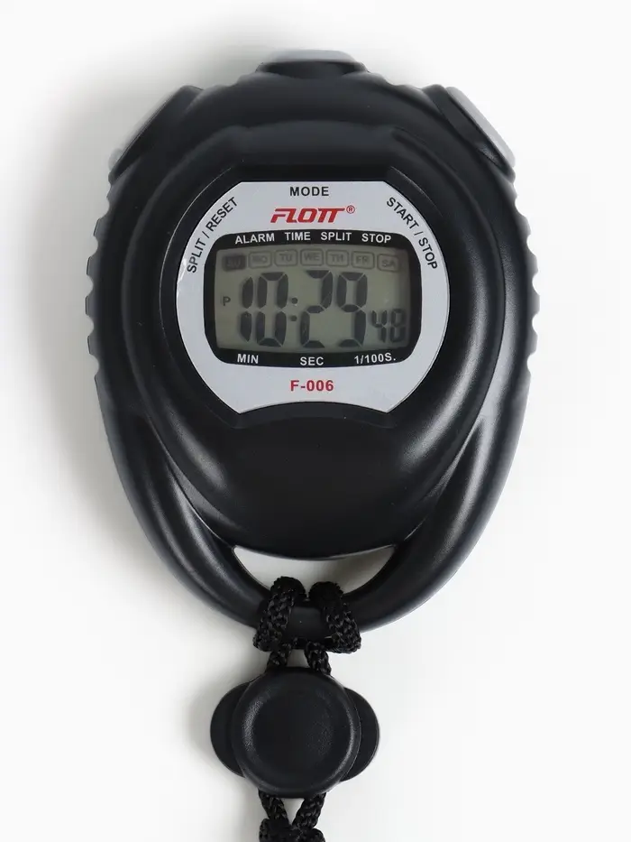 Секундомер F-006 – многофункциональные спортивные стоп-часы с будильником и календарём, предназначенные для индивидуального использования. Модель сочетает точность измерения времени и удобство эксплуатации, подходит для бега, плавания, велоспорта, баскетбола и других активностей.