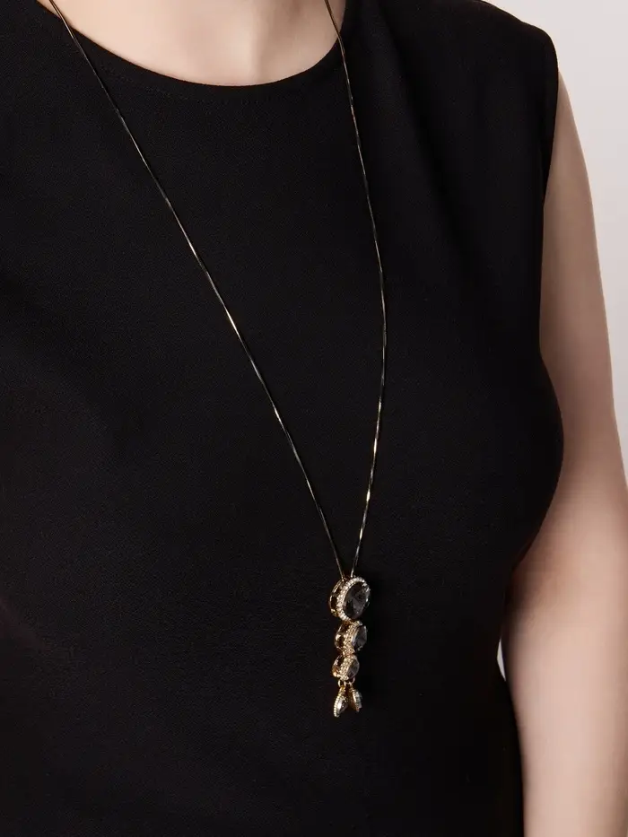 Этот аксессуар — находка для женщин, ценящих гармонию между классикой и современностью. Его изысканный дизайн подчеркнет вашу индивидуальность и дополняет любой стиль — от романтического до делового. Вырезанная стеклянная вставка с кристаллами создает мягкое сияние, притягательное взгляд и ощущение особого шика. В сочетании с качественными материалами и продуманным дизайном, кулон становится не просто украшением, а проявлением вашего внутреннего стиля и характера, создавая образ, который запомнится надолго.