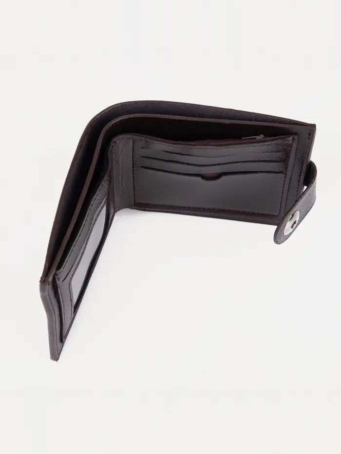 Коричневое мужское портмоне на магните сочетает в себе солидный внешний вид и продуманную организацию. Его классический цвет демонстрирует деловой стиль, оставаясь универсальным решением для разных ситуаций. Для мужчины, ценящего порядок в деталях.