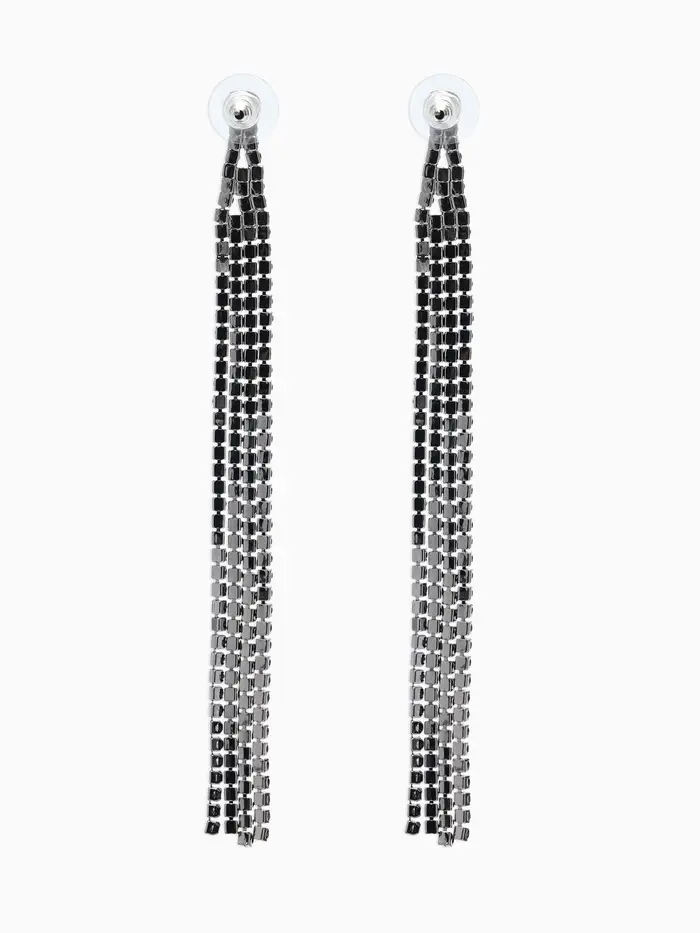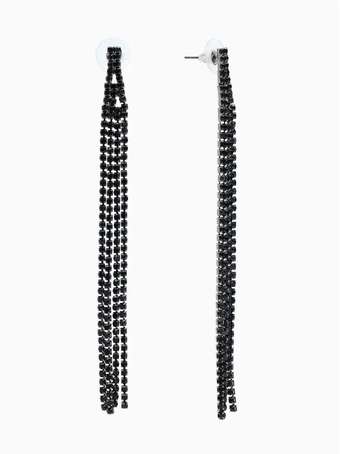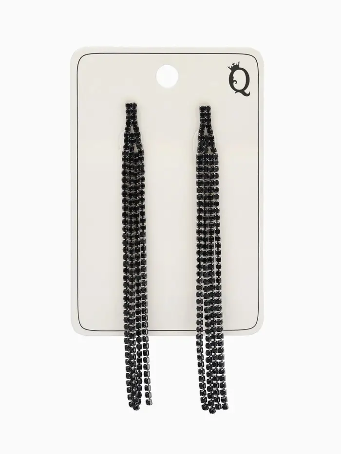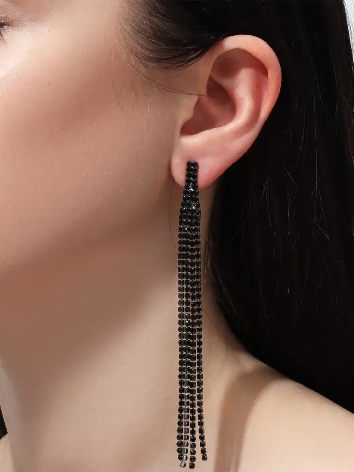 Серьги висячие со стразами «Лёд», 4 нити, чёрные, 11.5 см