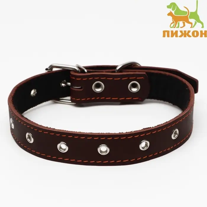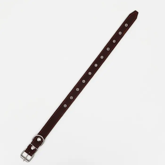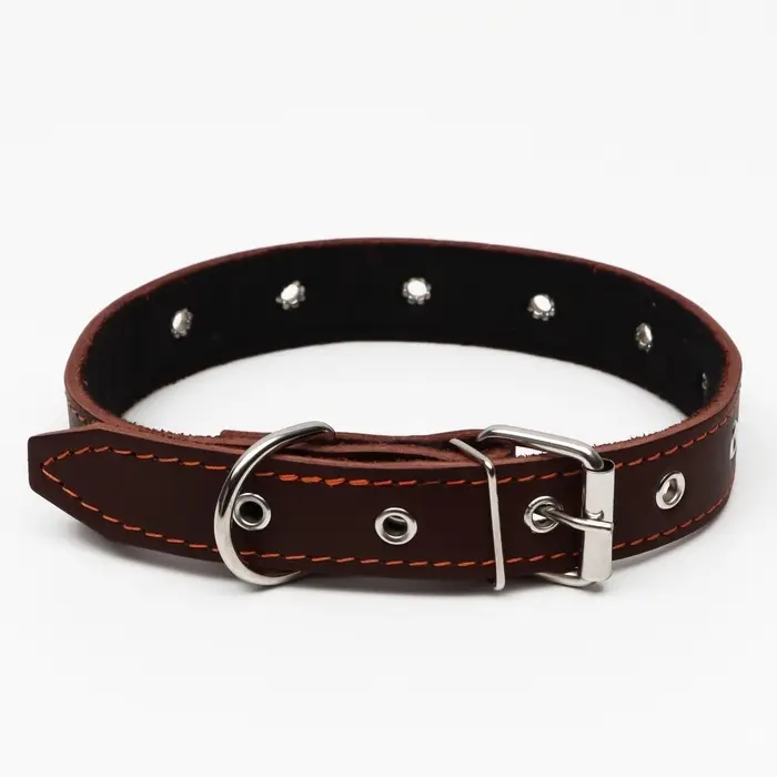 Ошейник кожаный на синтепоне, безразмерный, 65×3 см, ОШ 22-55 см, коричневый