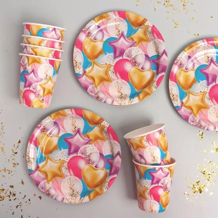 Посуда бумажная одноразовая «Шары», 6 тарелок, 6 стаканов